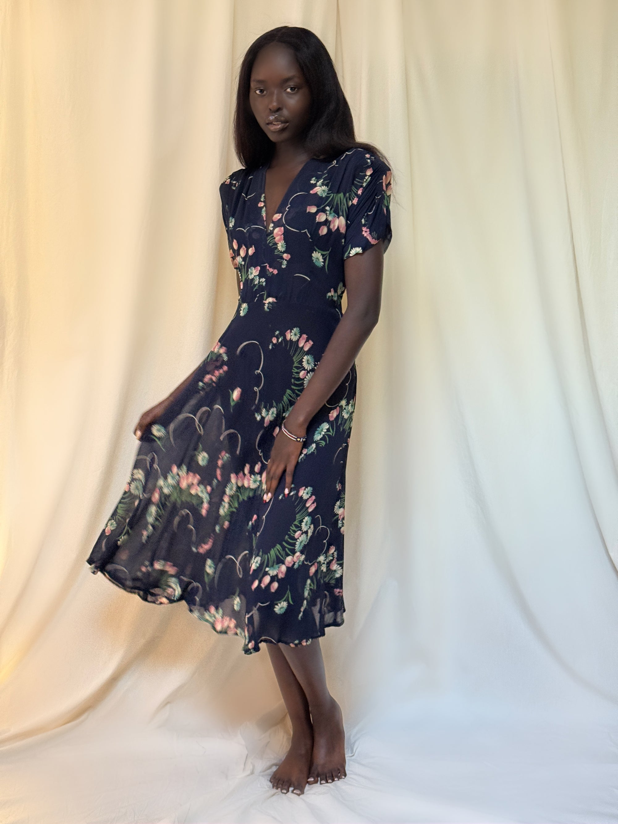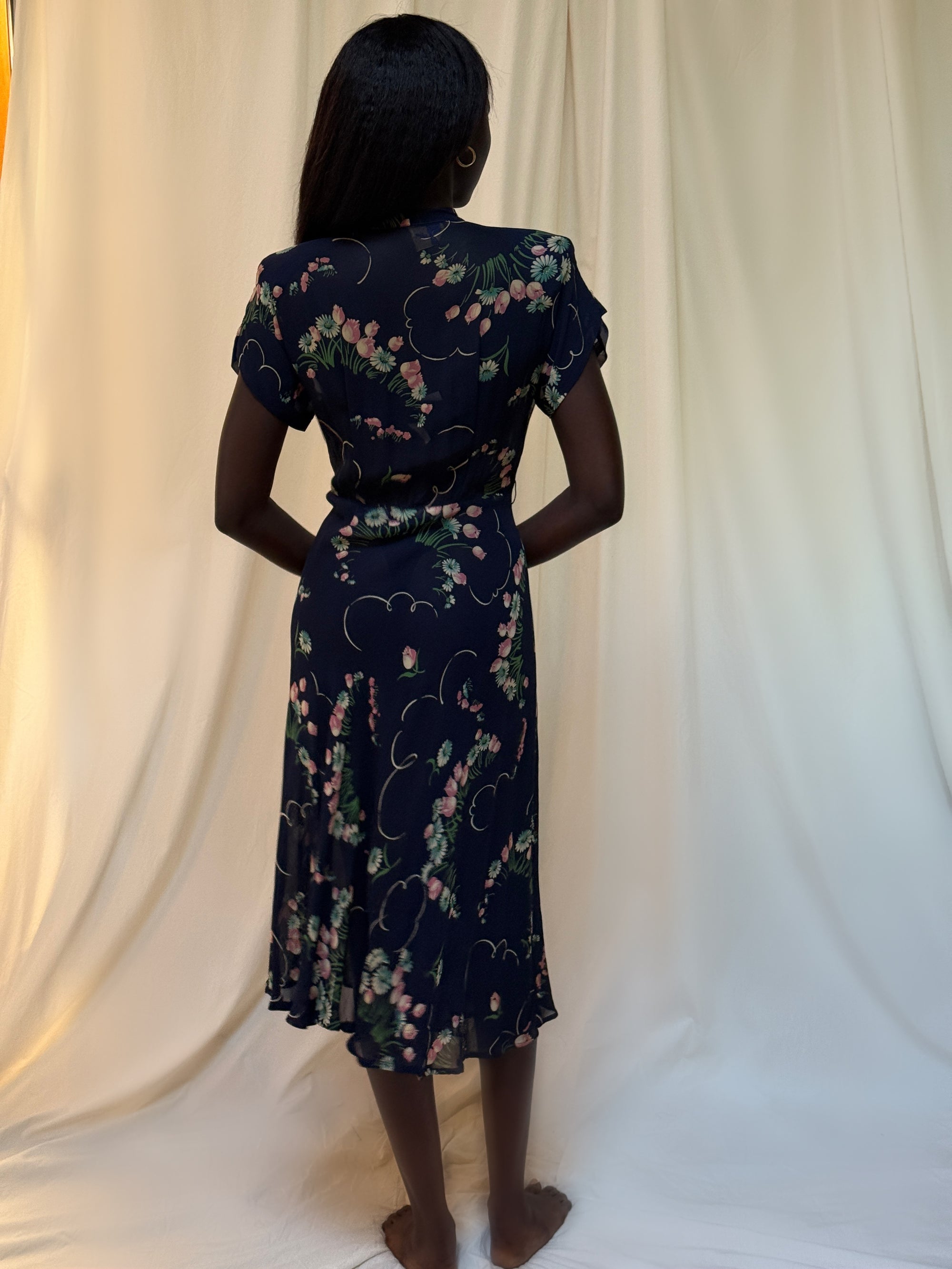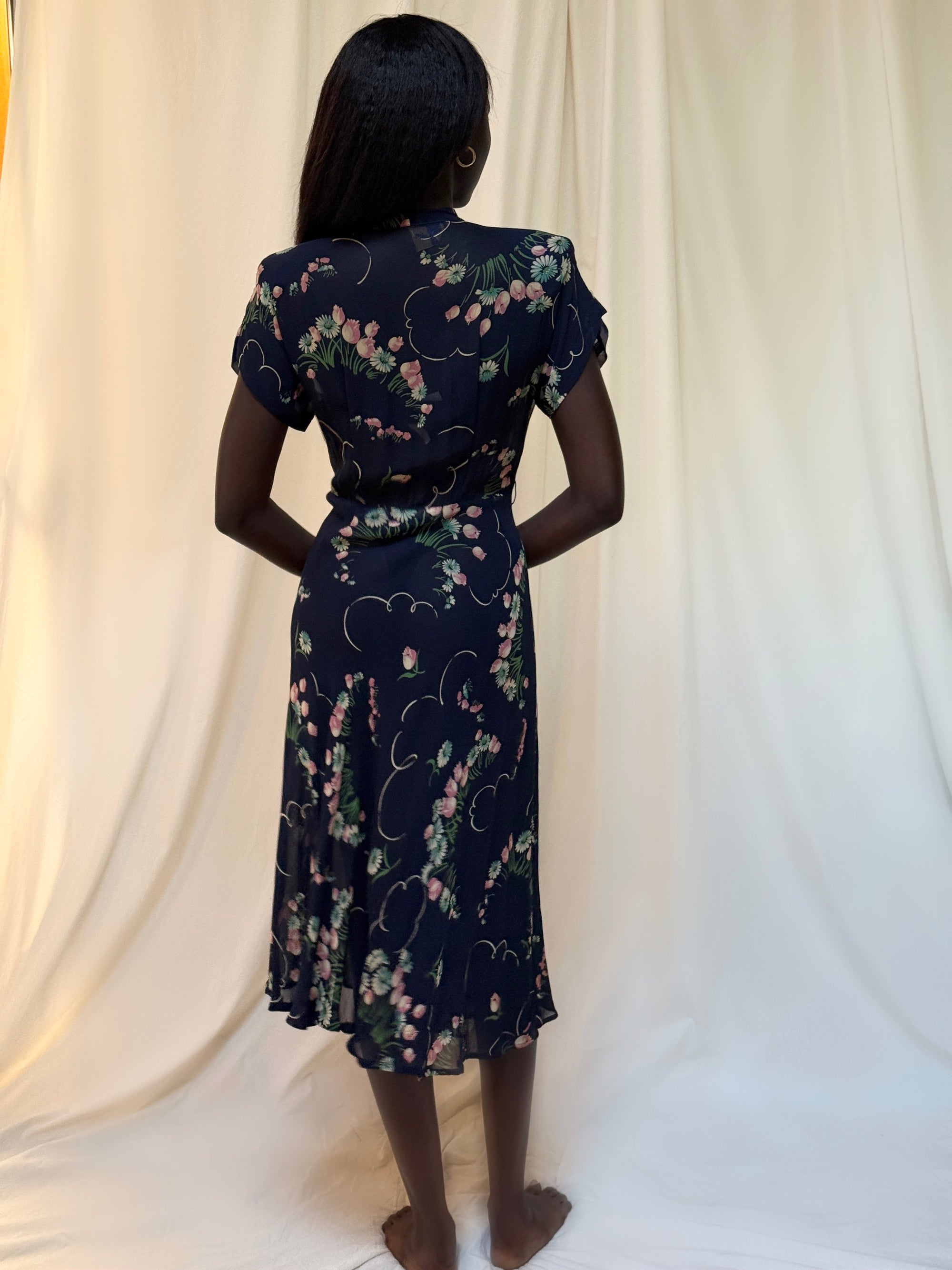 Vintage 1940’s Semi-Sheer Floral Chiffon Dress