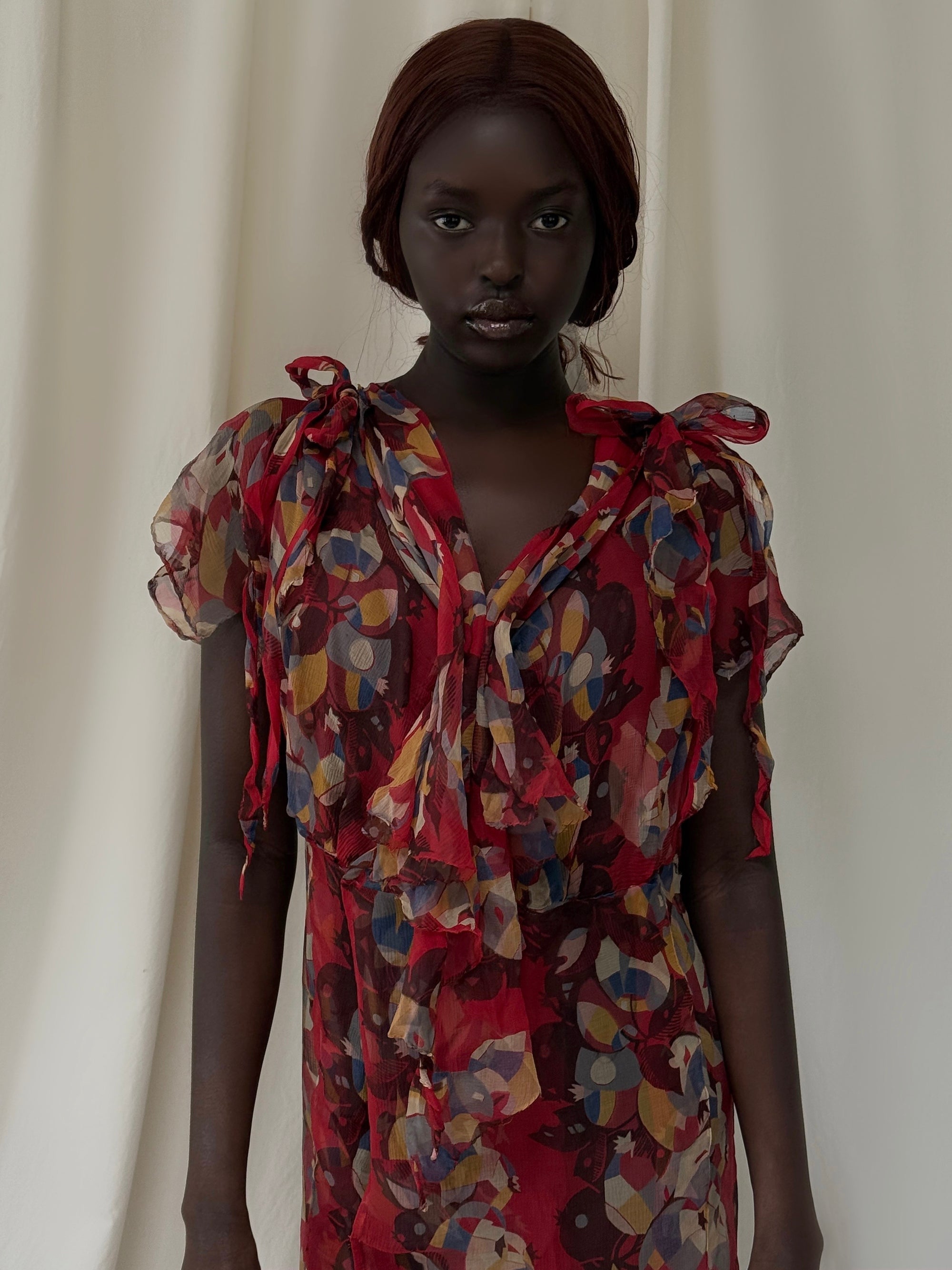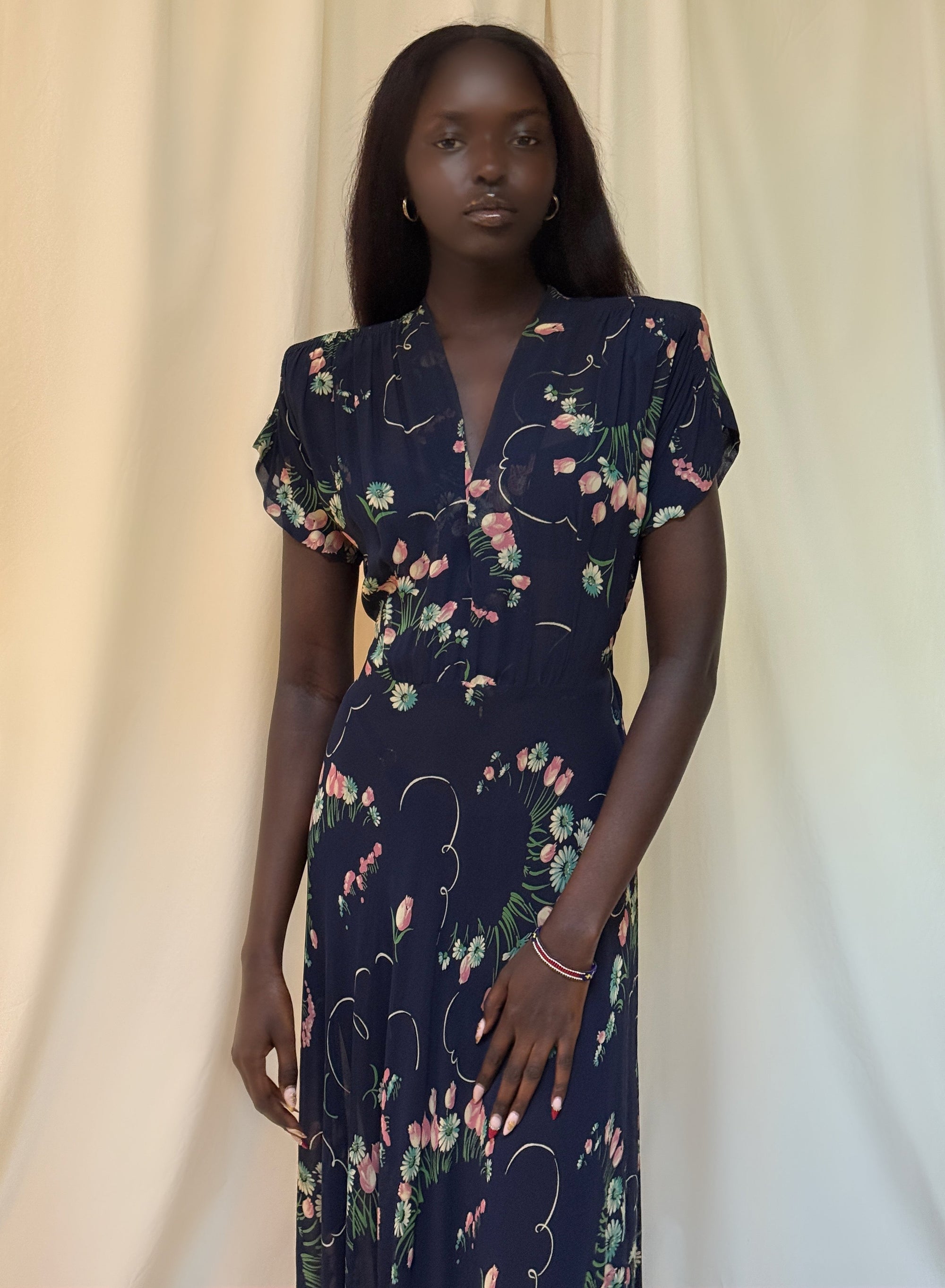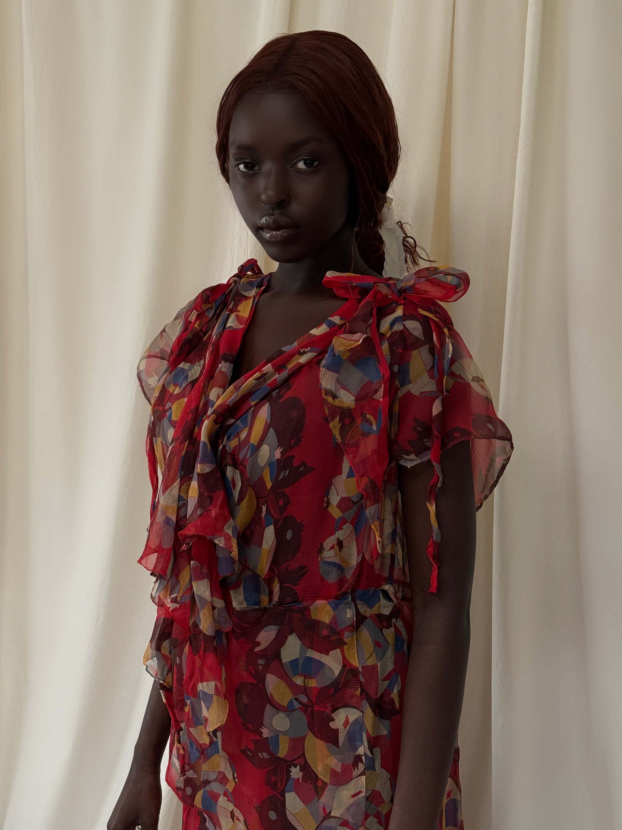 Vintage 1940’s Semi-Sheer Floral Chiffon Dress