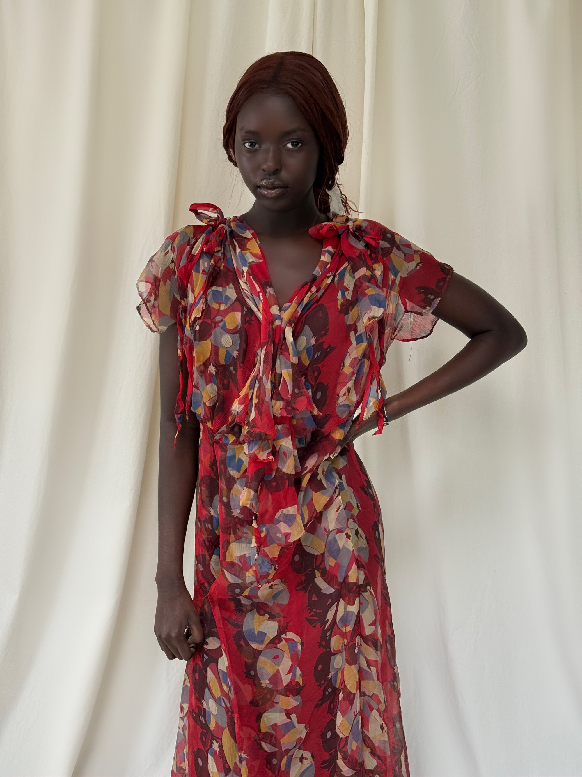 Vintage 1920’s Sheer Geometric Pattern Chiffon Dress