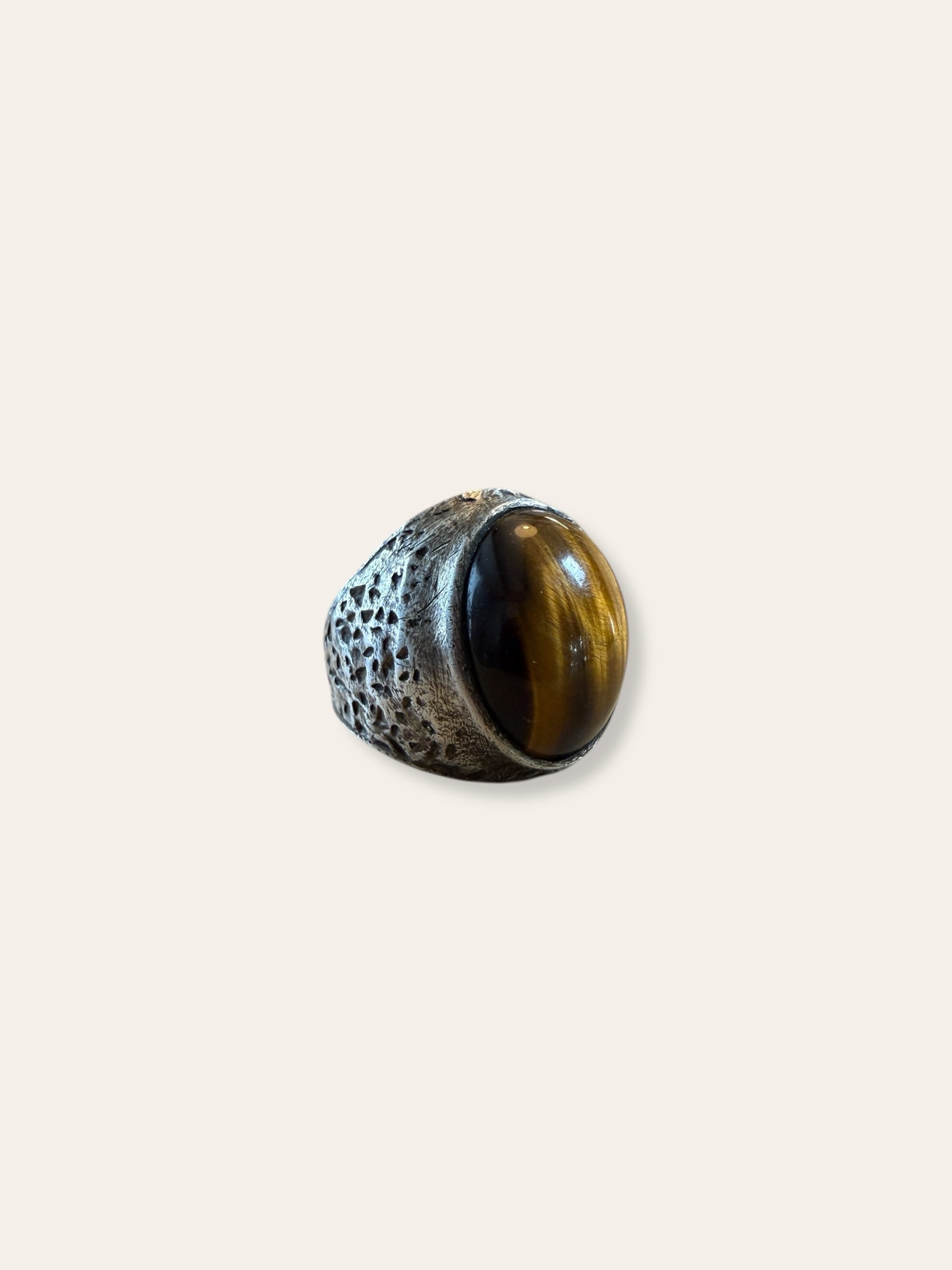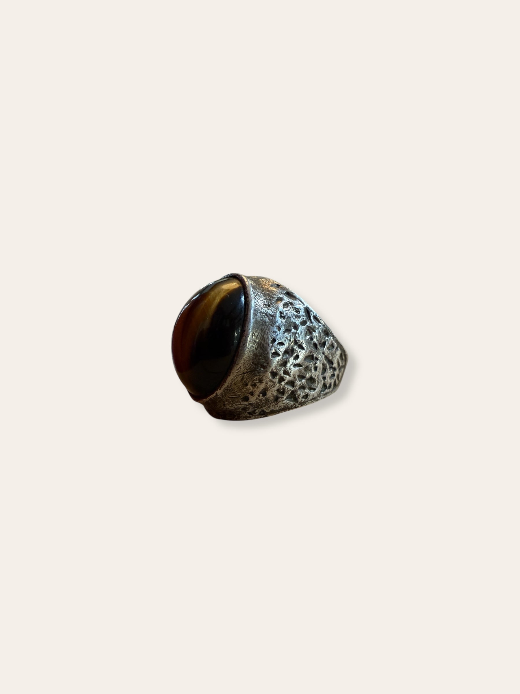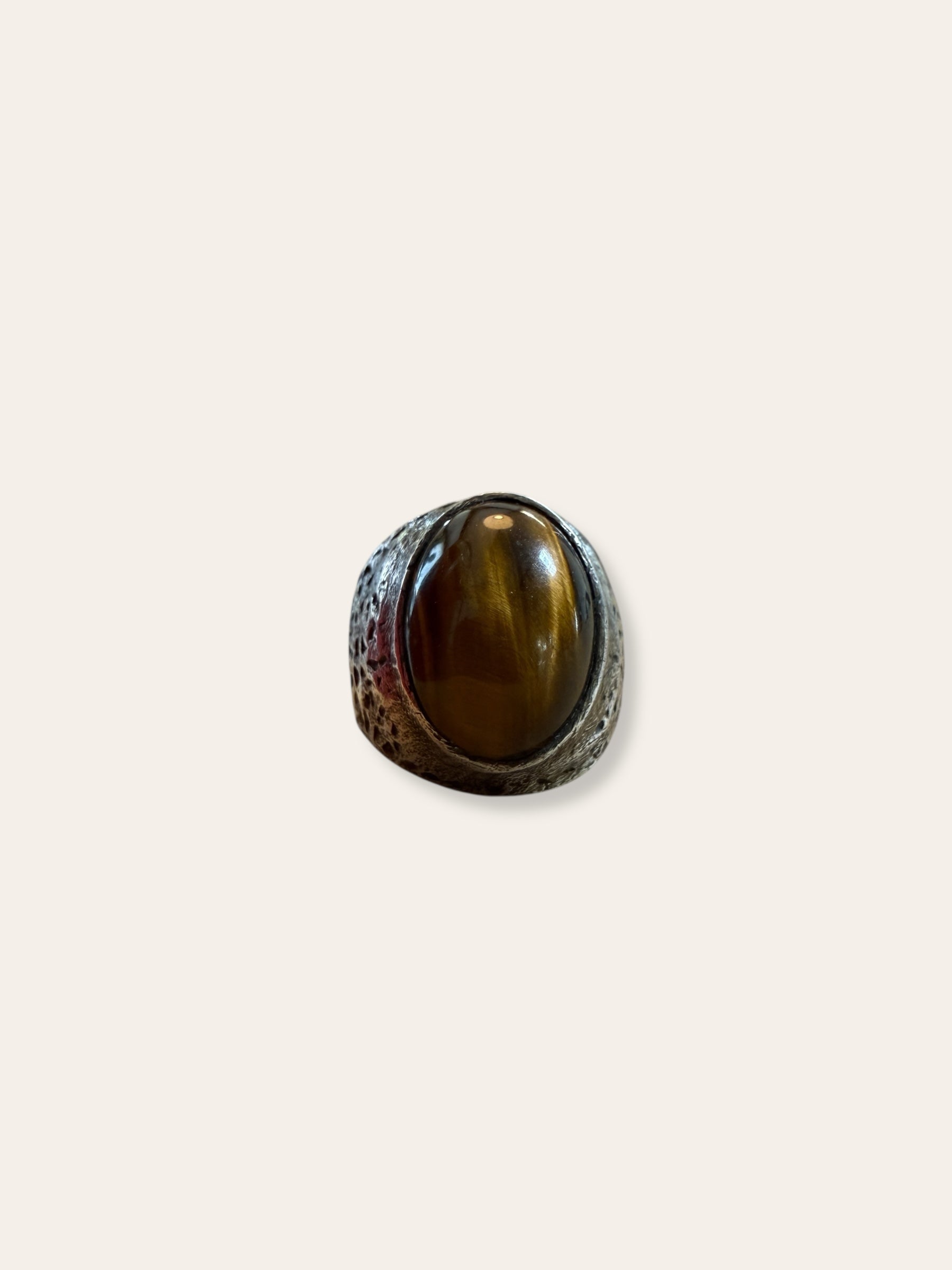 Vintage 1970’s Textured Sterling Silver Tiger’s Eye Ring Size: 10