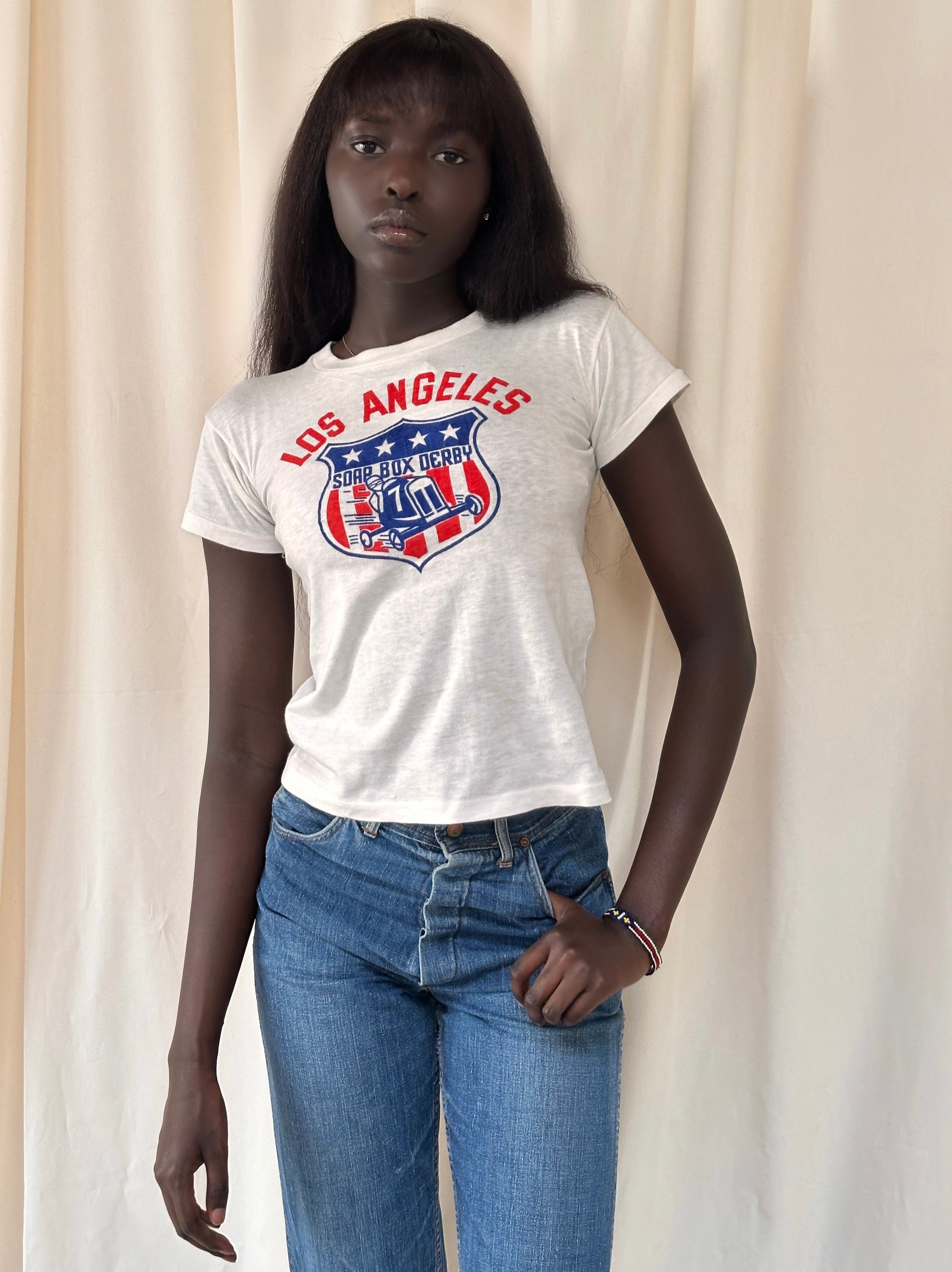 Vintage 1960’s Los Angeles Soap Box Derby Flock Print T-Shirt