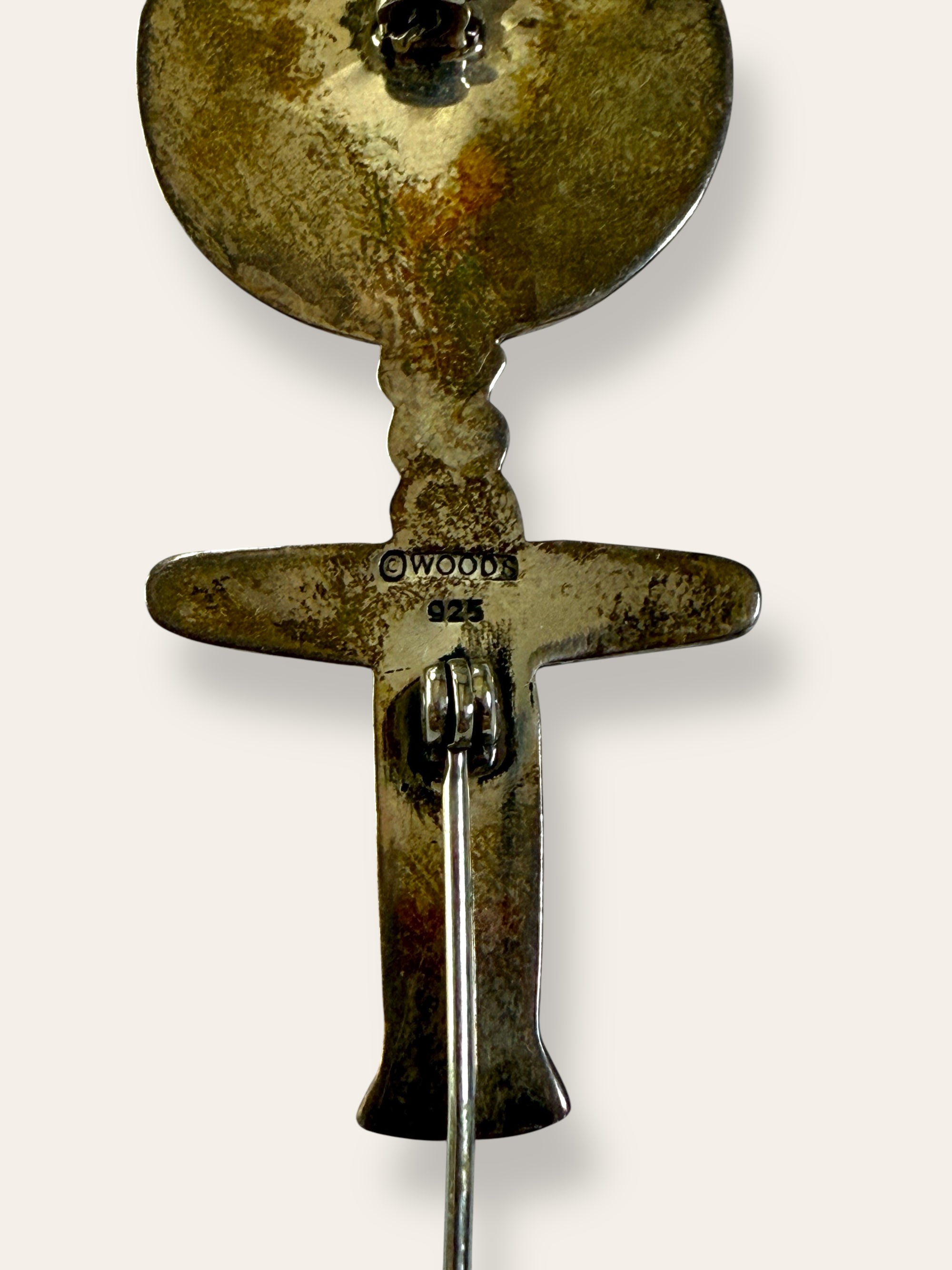 Vintage Zuni Inlay Sunface Sterling Silver Pin Pendant
