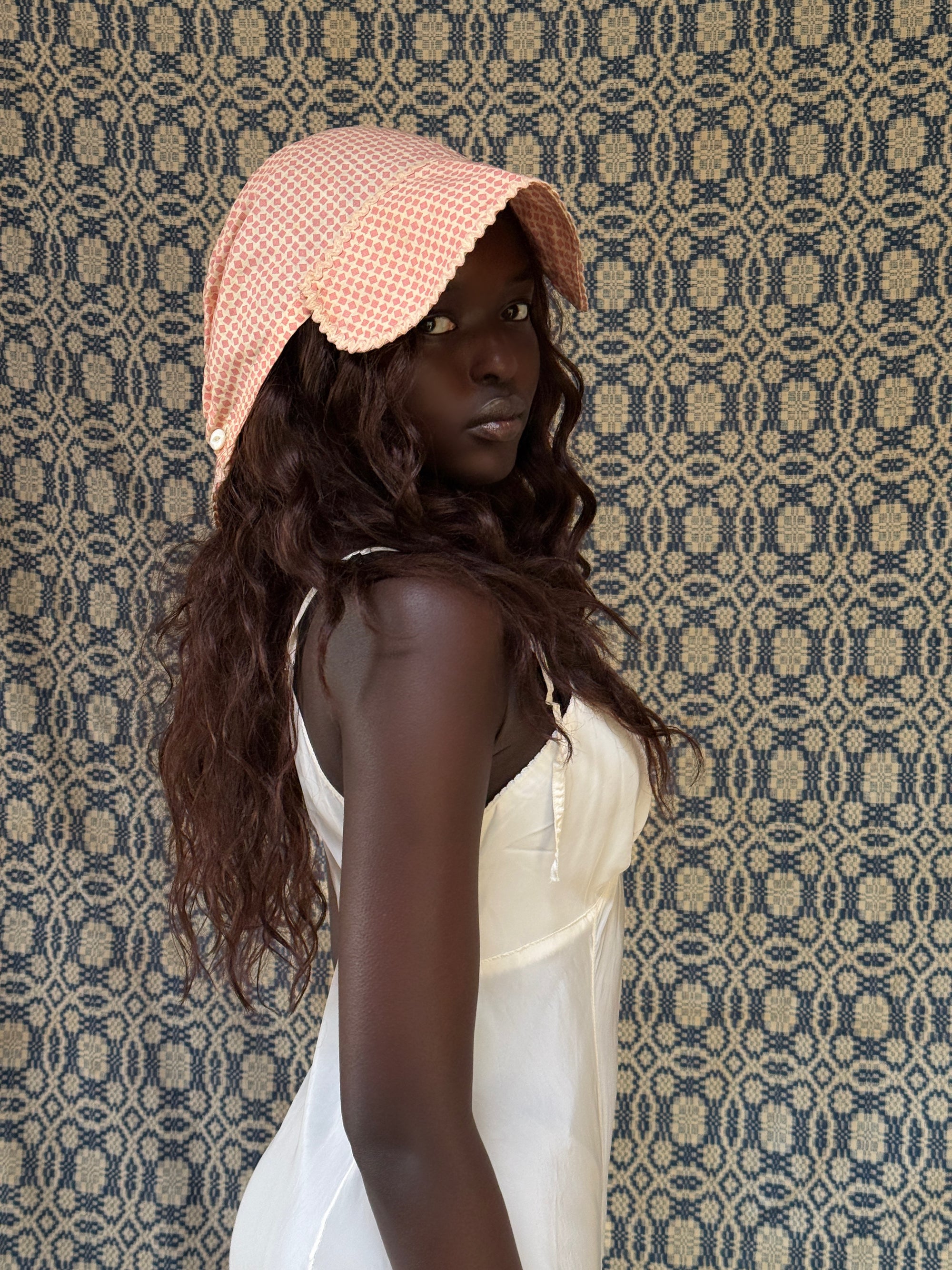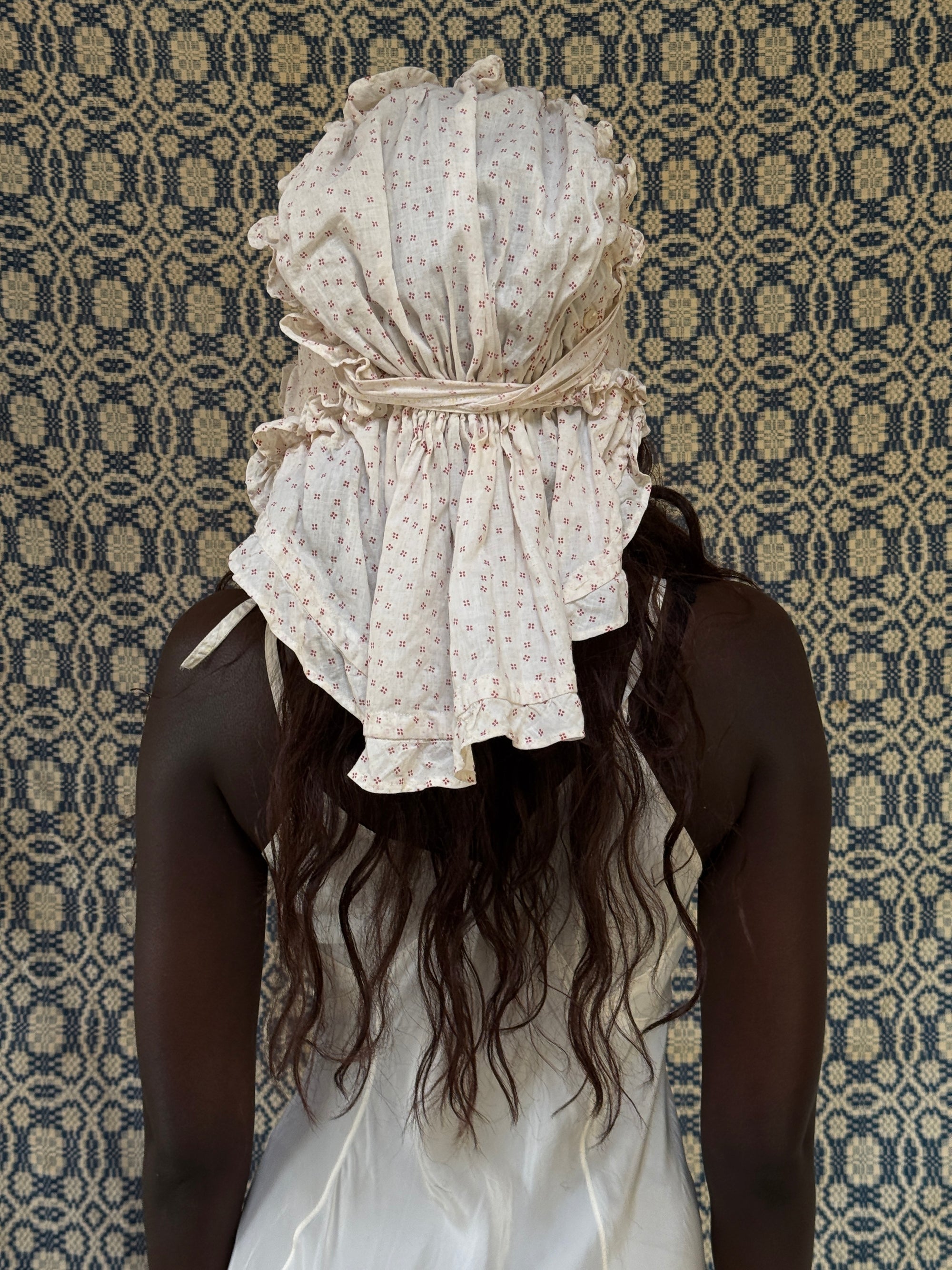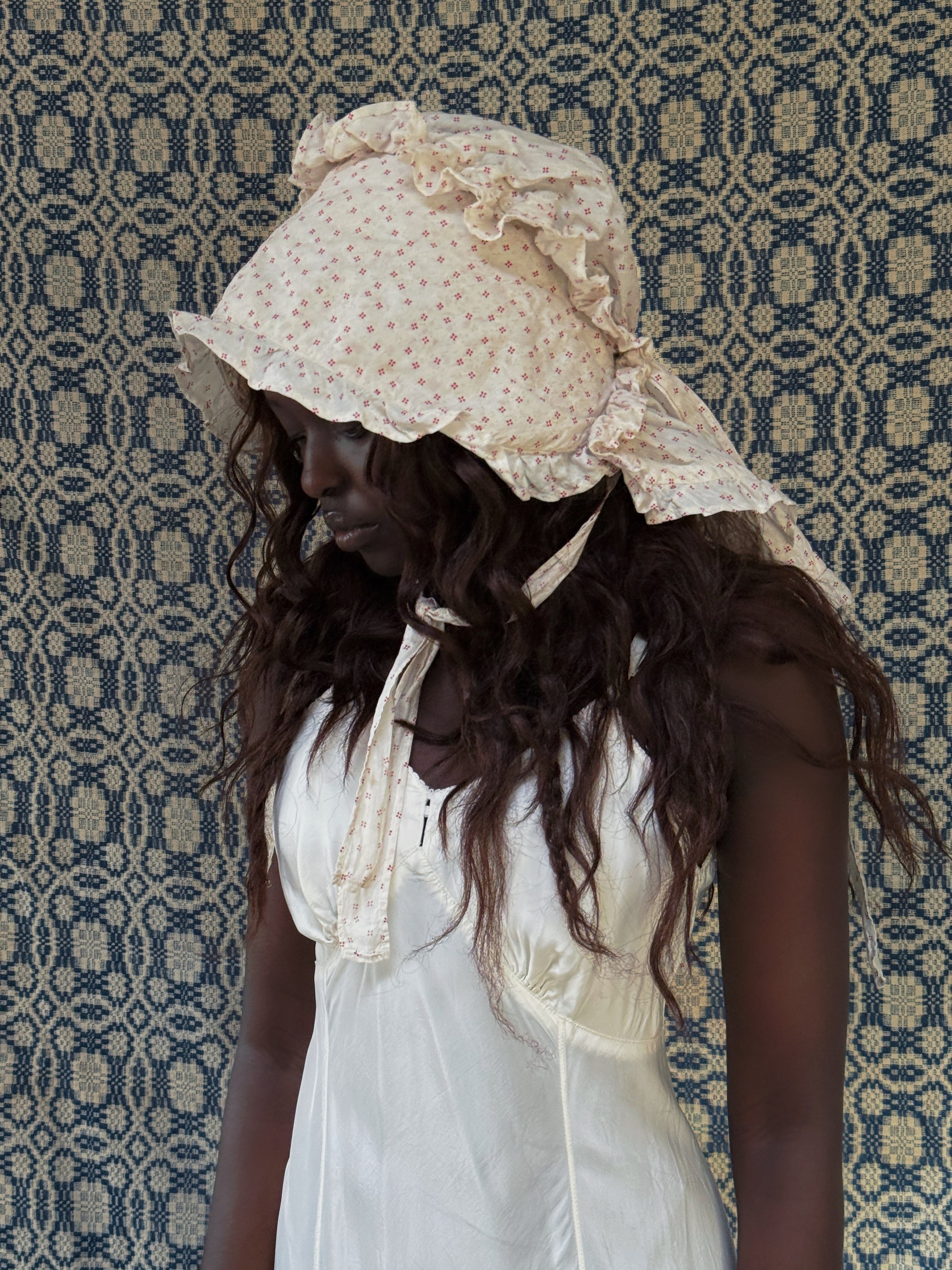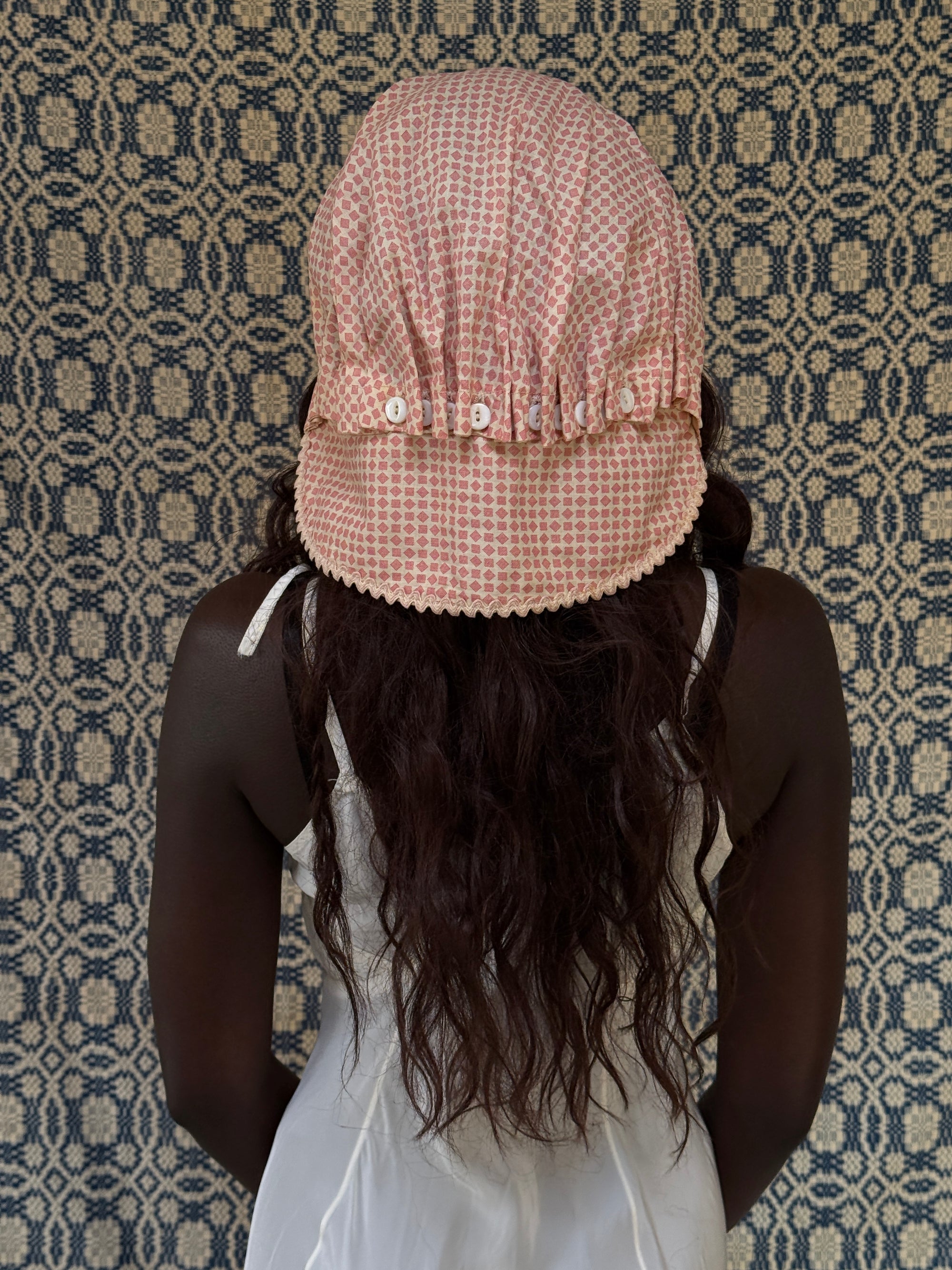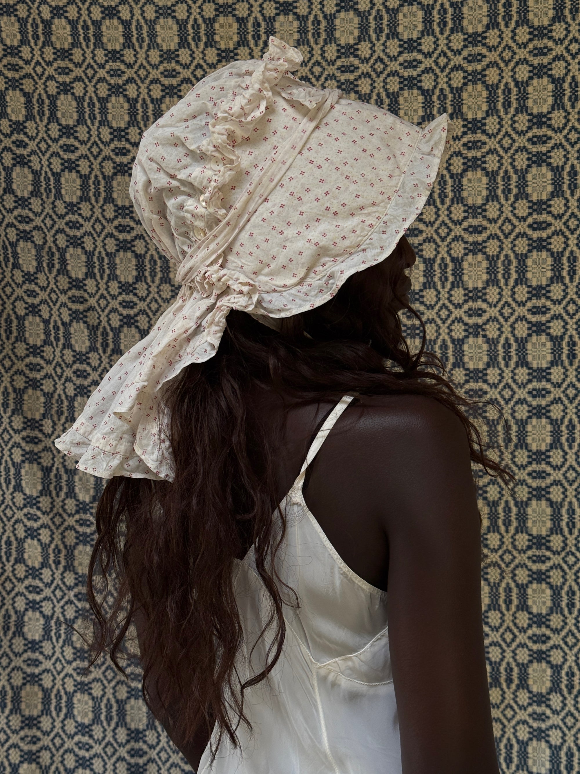 Antique 1800s Calico Cotton Sun Bonnet | Victorian Prairie Hat with Ruffle Detail