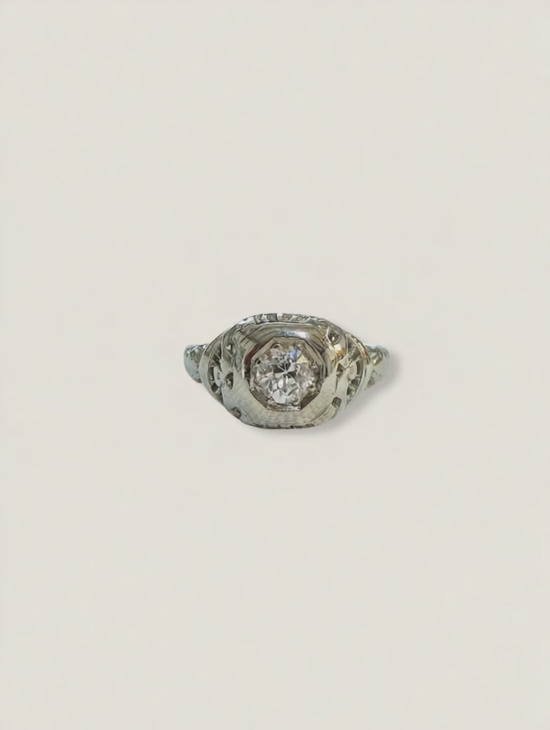 Vintage 1920’s 14k White Gold European Cut Diamond Ring Size 5.5
