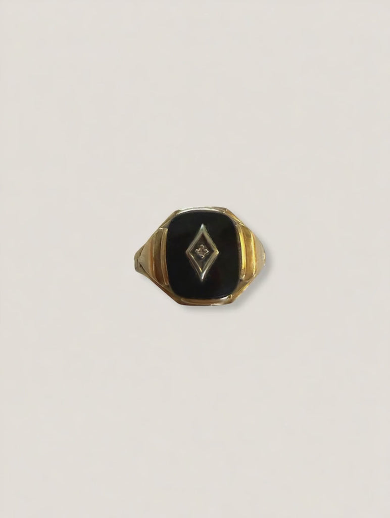 Vintage 1940’s Art Deco Onyx 10k Gold Diamond Ring Size 12.5