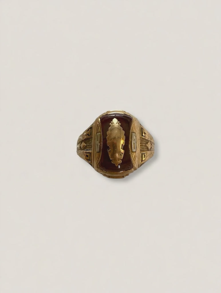 Vintage 1940’s HJ 10k Gold Art Deco Class Ring Size 10.5